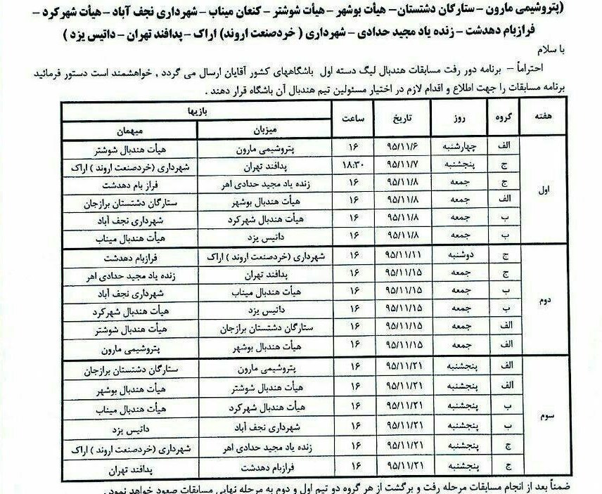 مسابقات لیگ دسته یک هندبال از فردا در اهر برگزار می‌شود+برنامه مسابقات