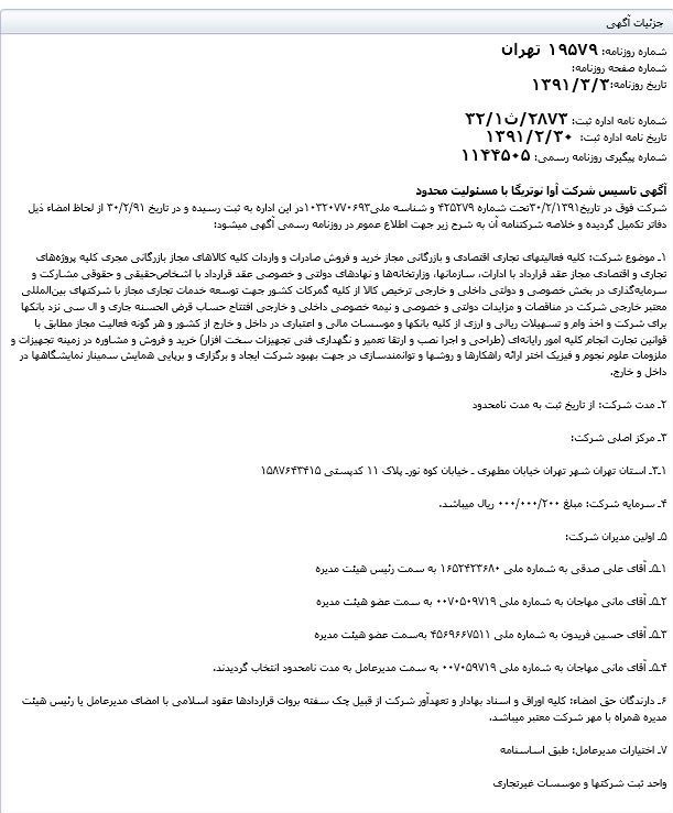 سند شرکت جدید فریدون را در ادامه ببینید: