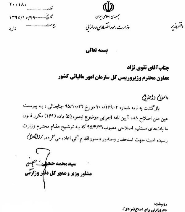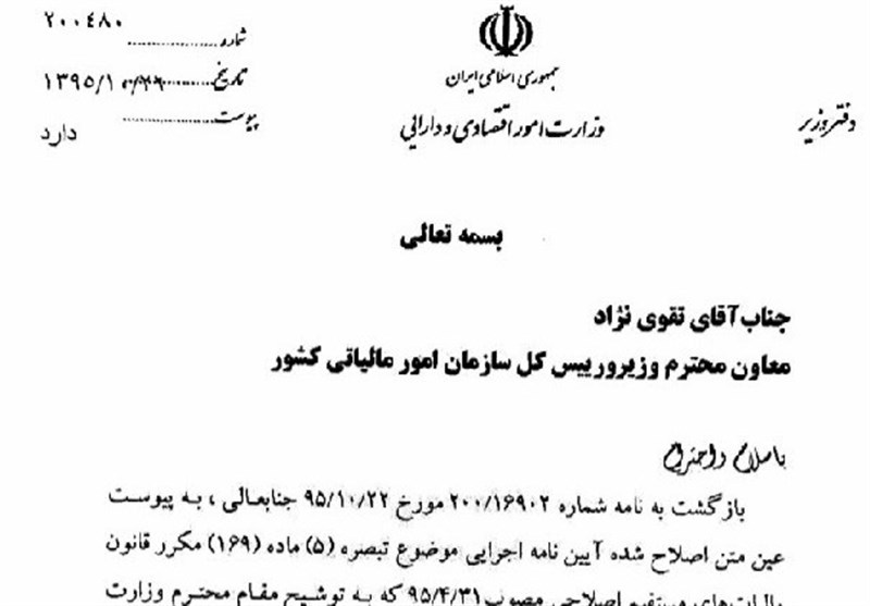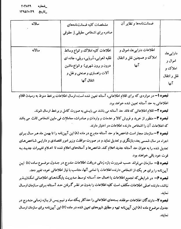 به گزارش خبرنگار اقتصادی باشگاه خبرنگاران تسنیم«پویا»؛ با ابلاغ آئین نامه اجرایی موضوع تبصره 5 ماده 169 مالیاتهای مستقیم، کلیه دستگاههای کشور ملزم به ارائه اطلاعات زیر به سازمان امور مالیاتی کشور شدند: