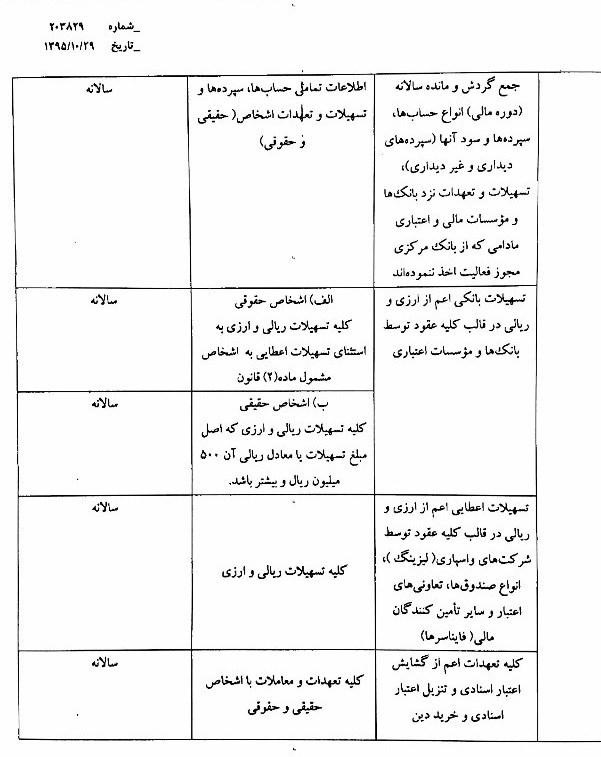 اشخاص حقیقی: جمع گردش بدهکار یا بستانکار کلیه حساب های سپرده اشخاص که در طی سال شمسی پانصد میلیون تومان (یا معادل ارزی این مبلغ) و بیشتر باشد.