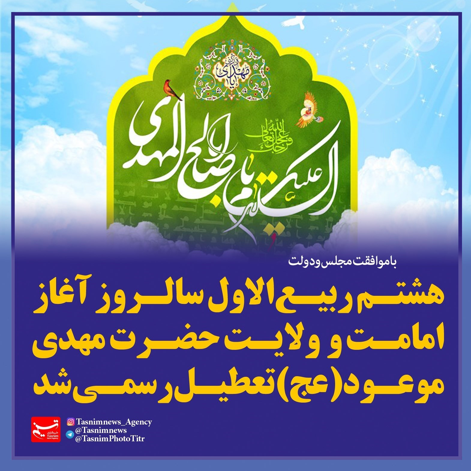 با موافقت مجلس و دولت هشتم ربیع‌الاول سالروز شهادت امام حسن عسگری(ع) و آغاز امامت ولی‌عصر (عج) به عنوان تعطیل رسمی اعلام شد.