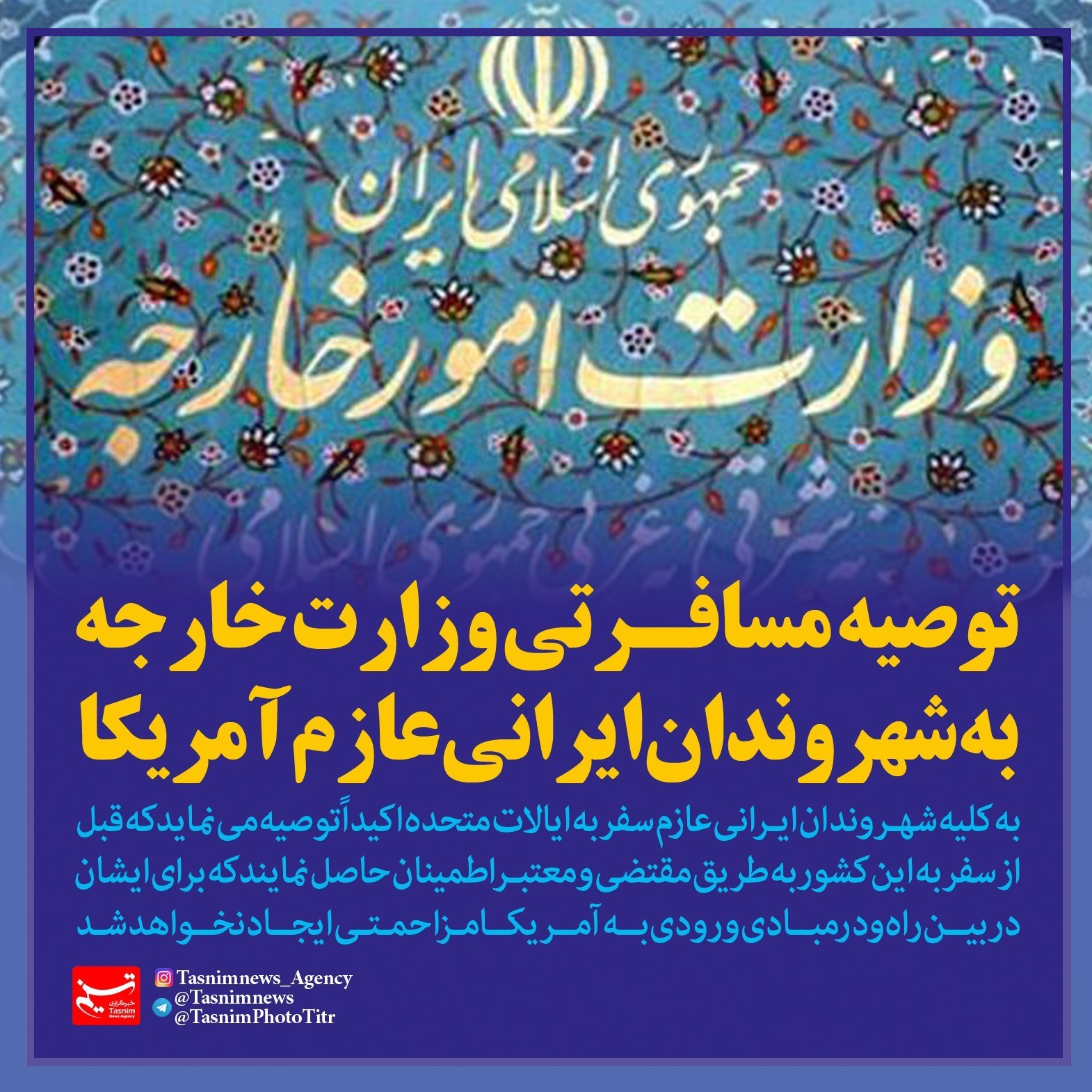 فتوتیتر/ توصیه مسافرتی وزارت خارجه به شهروندان ایرانی عازم آمریکا