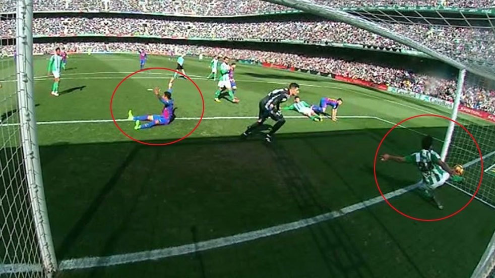 در دقیقه 77 این بازی در حالی که آبیواناریها در نتیجه یک بر صفر عقب بودند، دو اتفاق بحثبرانگیز رخ داد که ابتدا بازیکن بتیس روی نیمار خطای واضحی مرتکب شد و همان توپ سرگردان را جوردی آلبا به داخل چارچوب شوت زد که توپ کاملاً از خط دروازه عبور کرد، اما نه داور و نه کمکداور گل صحیح بارسا را قبول نکردند.