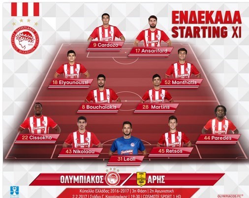 به گزارش خبرگزاری تسنیم، تیم المپیاکوس از ساعت 21 امشب (پنجشنبه) در چارچوب دیدار برگشت جام حذفی یونان میزبان تیم دسته اولی آریس سالونیکی است. پائولو بنتو، سرمربی پرتغالی تیم المپیاکوس کریم انصاریفرد را در ترکیب اصلی تیمش روانه میدان میکند تا این ملیپوش همانند بازی رفت برابر آریس در خط حمله کنار کاردوزو قرار بگیرد.