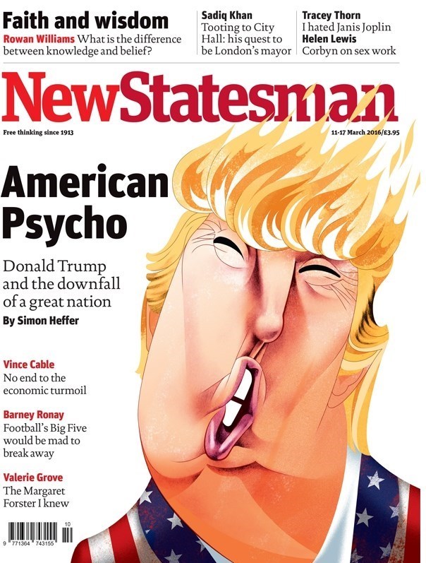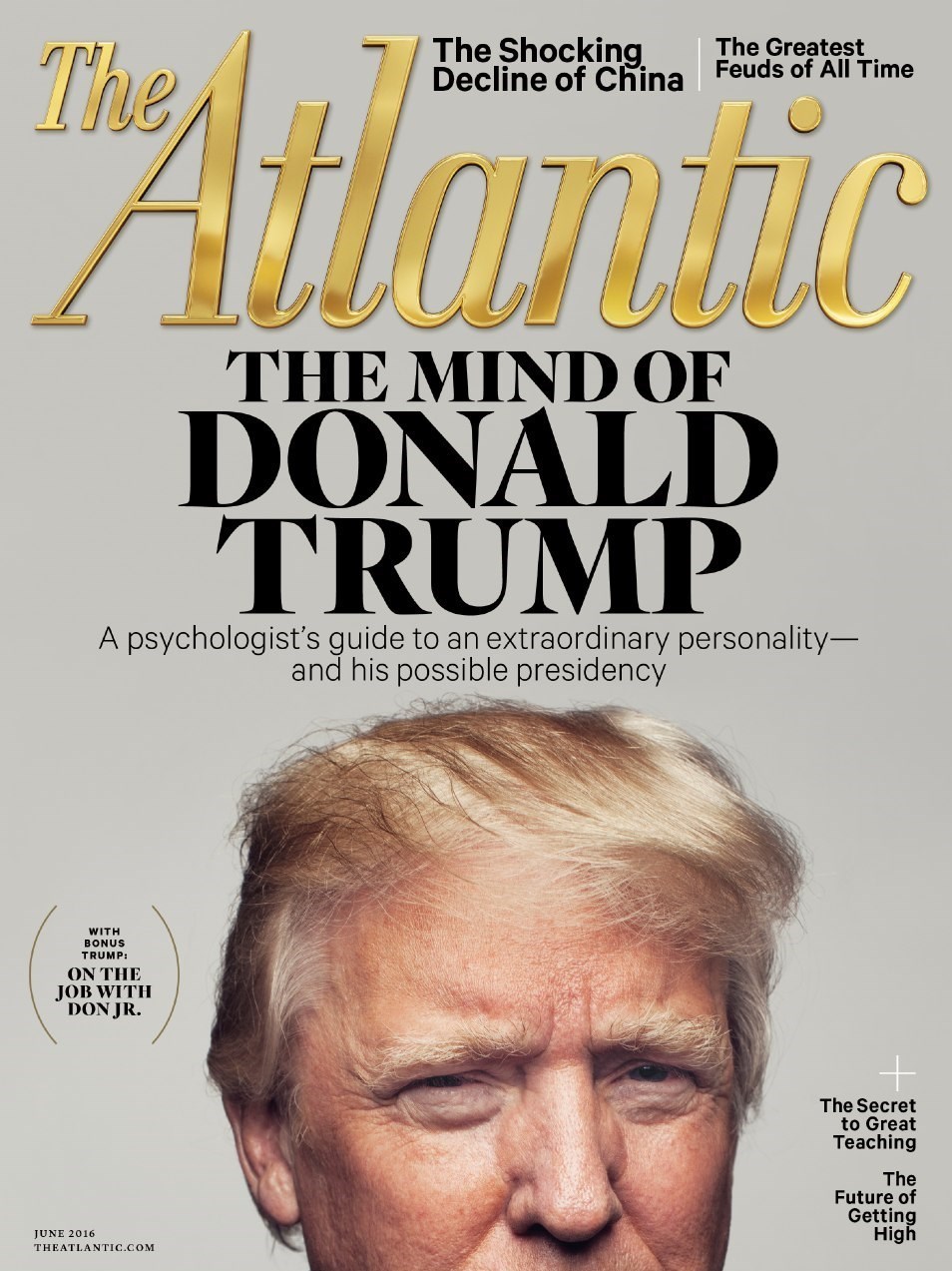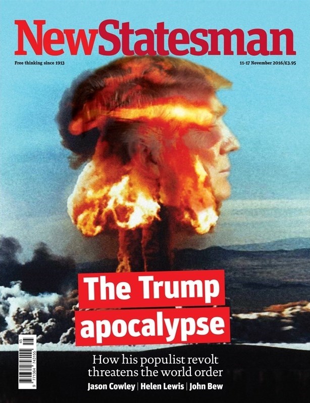 پس از پیروزی غیرمنتطره - برای رسانهها و مراکز افکار سنجی - ترامپ بر رقیبش کلینتون، صفحات مجلات مشحون از ناباوری و خشم نسبت به وی شدند. در این دوره، ترامپ فردی معرفی شده است که با رسیدن به منصب به ریاست جمهوی آمریکایی، فاجعه و یا چالشی «آخرالزمانی» برای دنیا و نظم مستقر آن ایجاد خواهد کرد. کسی که بدون توجه به نهادهای مدنی و دموکراتیک، مردم را تابع اراده خود میبیند، و حامیان ایدههای افراطی تحت لوای پیروزیاش توانستهاند بار دیگر به قدرت بازگردند.