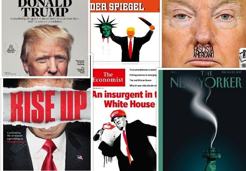 به گزارش گروه بینالملل خبرگزاری تسنیم، چهره، شخصیت و منش دونالد ترامپ رئیس جمهوری کنونی آمریکا، از زمانی که وارد رقابتهای ریاست جمهوری این کشور شد، تا همین امروز که سه هفته است عهدهدار این سمت شده است، با شیوههای گوناگونی در مجلات معتبر غربی به تصویر کشیده است.