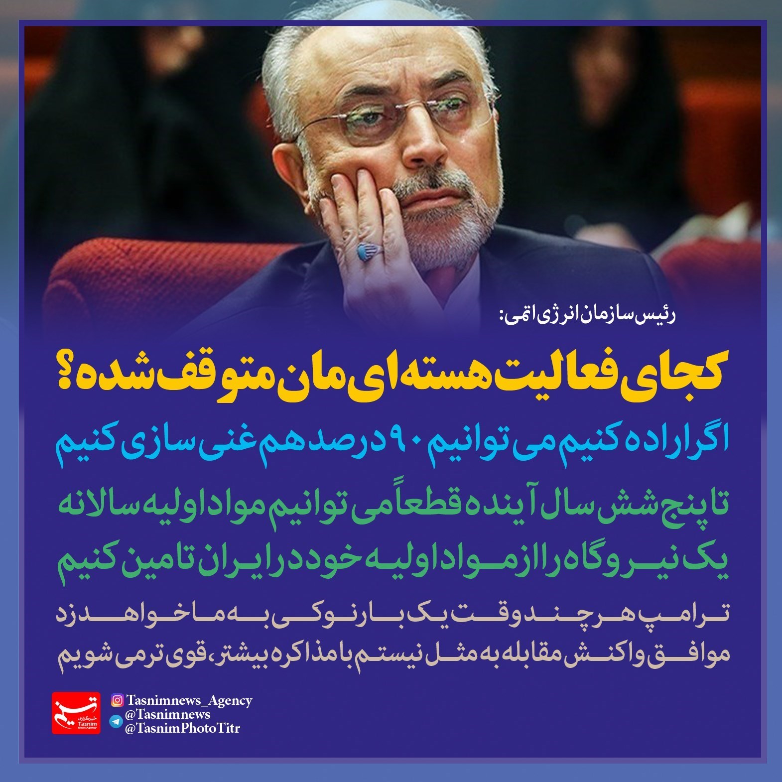 فتوتیتر/صالحی: کجای فعالیت هسته‌ای‌مان متوقف شده؟