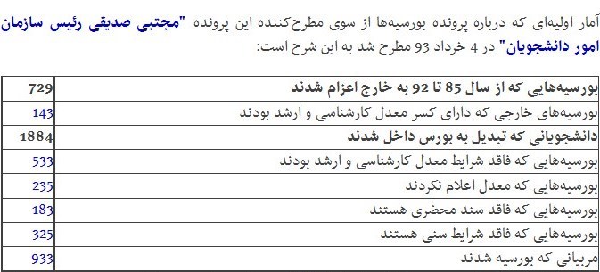 پس از برگزاری جلسات متعدد با کمیسیونهای مختلف مجلس و دیوان محاسبات وزارت علوم در آبان ماه در اطلاعیهای آماری رسمی از دانشجویان بورسیه مطرح کرد. در این اطلاعیه تنها 36 نفر به دلیل ارائه اطلاعات غلط از ادامه تحصیل محروم شدند.