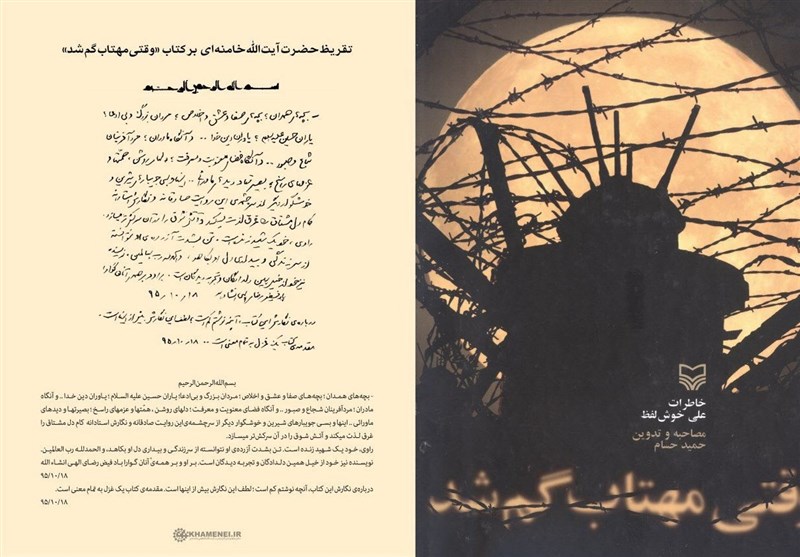 به گزارش خبرنگار سیاسی خبرگزاری تسنیم اعزامی به همدان، در مراسم ششمین پاسداشت ادبیات جهاد و مقاومت و رونمایی از تقریظ امام خامنهای بر 4 کتاب دفاع مقدس که صبح امروز در حسینیه امامخمینی(ره) شهر همدان با حضور با شکوه هزاران تن از مردم برگزار شد، از تقریظ حضرت آیتالله خامنهای بر کتاب «وقتی مهتاب گم شد» رونمایی شد.