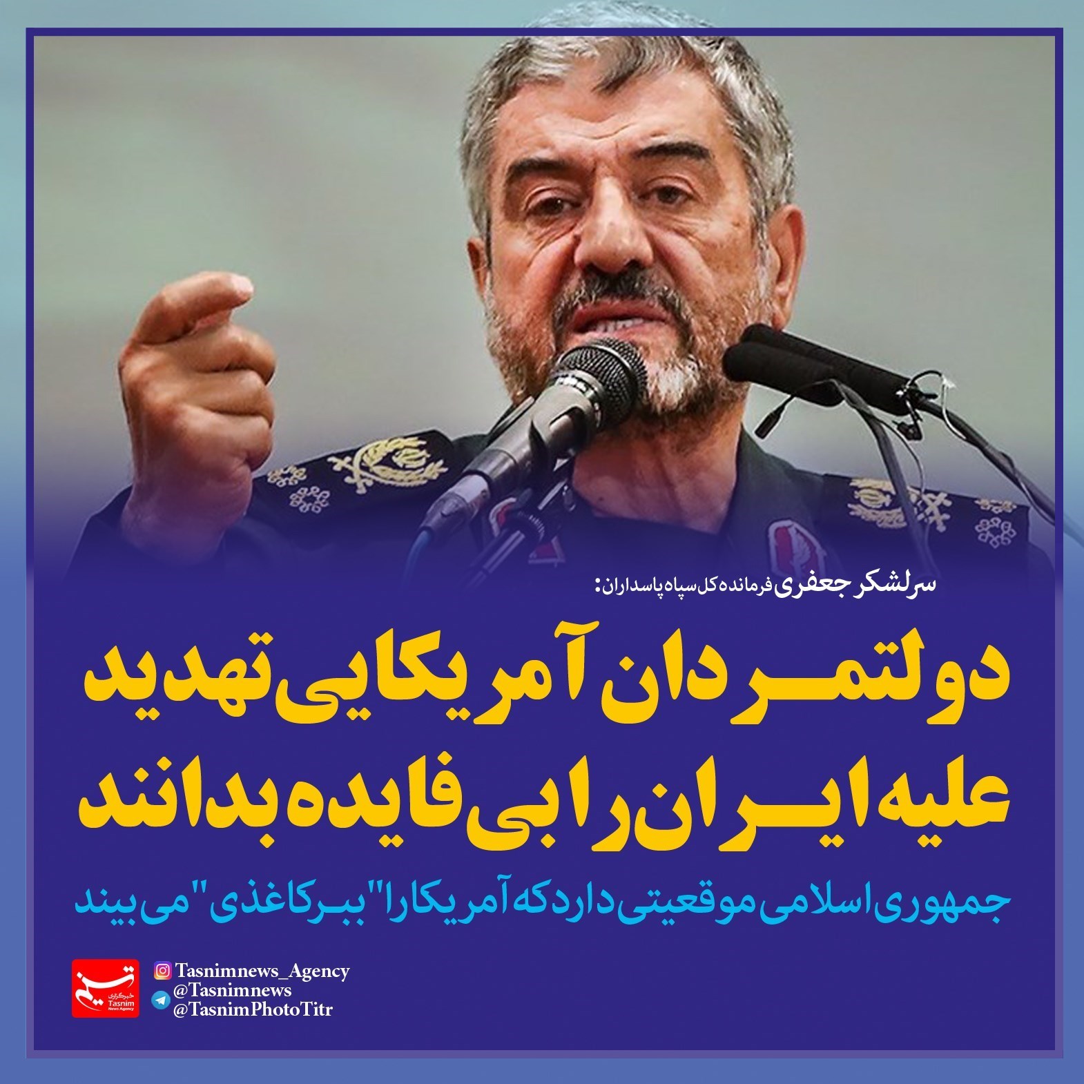 فتوتیتر/سرلشکر جعفری:دولتمردان آمریکایی تهدید علیه ایران را بی‌فایده بدانند