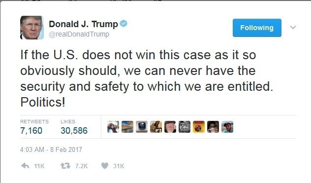 اگر آمریکا در این پرونده (ممنوعیت ورود برخی مهاجران به آمریکا) آنطور که باید، پیروز بیرون نیاید، ما هرگز نمی توانیم امنیت و ایمنی که استحقاقش را داریم، داشته باشیم.