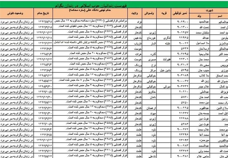 فهرست کامل زندانیان حزب اسلامی حکمتیار در زندان بگرام را از اینجا دانلود کنید.