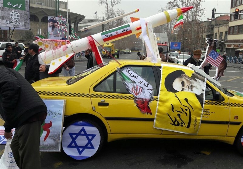 مردم ماکت موشک‌‌‌‌های ایرانی را به راهپیمایی 22 بهمن آوردند+ تصویر