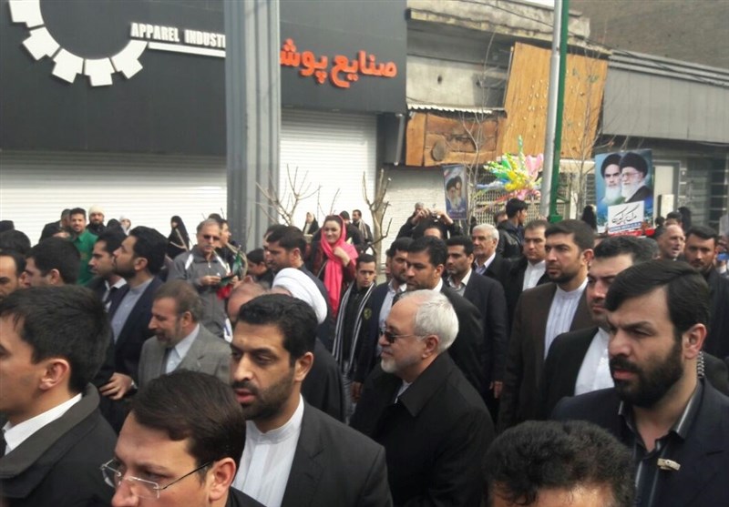 به گزارش خبرنگار سیاسی خبرگزاری تسنیم، محمدجواد ظریف وزیر امور خارجه کشورمان صبح امروز به جمع راهپیمایان تهرانی در مراسم گرامیداشت سیوهشتمین سالگرد پیروزی انقلاب اسلامی پیوست.