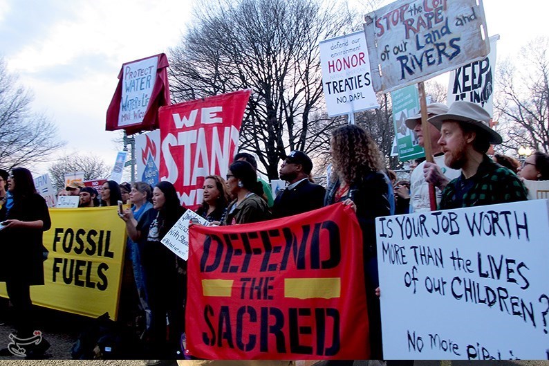 این موج اعتراضات جدیدی است که آتش آن در حال شعلهور شدن است، در تظاهرات بومیان در مقابل کاخ سفید، صدها نفر از بومیان و مسلمانان برگزار شد و شرکت کنندگان در اعتراض به ساخت خط لوله انتقال نفت از طریق رودخانه «میسوری» که باعث آلودگی این رودخانه خواهد شد، شعار میدادند، از جمله یکصدا میگفتند «آب حیات است», «نفت را نمیتوانید بنوشید».