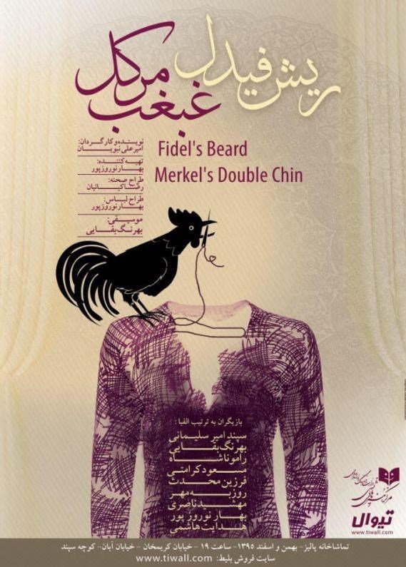 « ریش فیدل غبغب مرکل » از 26 بهمن تا 27 اسفند ماه، هر روز ساعت 19:00 در تماشاخانه پالیز، واقع در خیابان کریمخان، خیابان عضدی جنوبی (آبان)، خیابان سپند، پلاک 69) روی صحنه میرود.