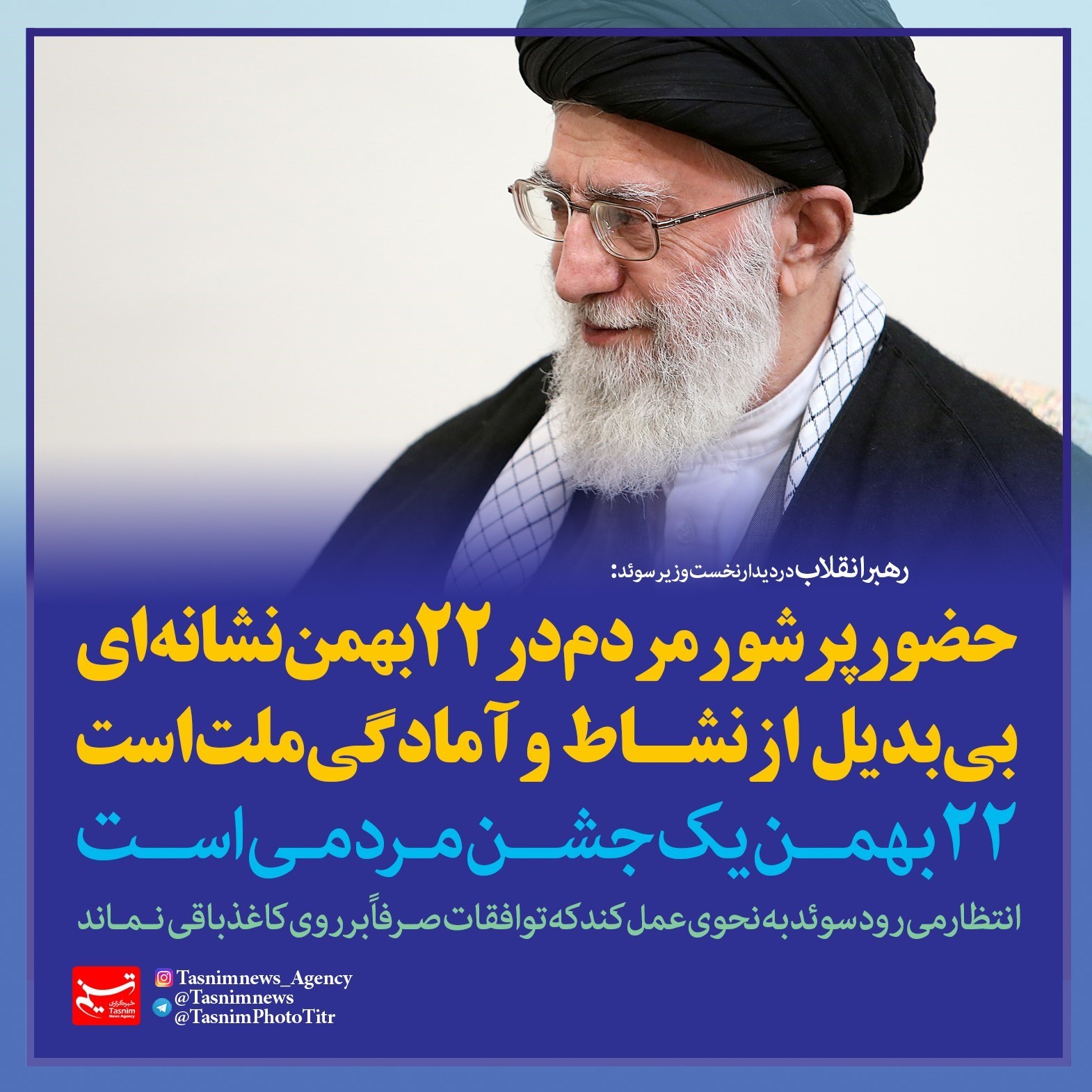 رهبر انقلاب در دیدار نخست‌وزیر سوئد فرمودند:سالگرد انقلابها در دنیا به صورت تشریفاتی برگزار می‌شود اما در ایران، سالروز پیروزی انقلاب اسلامی یک جشن واقعی است که به‌دست خود مردم برگزار می‌شود