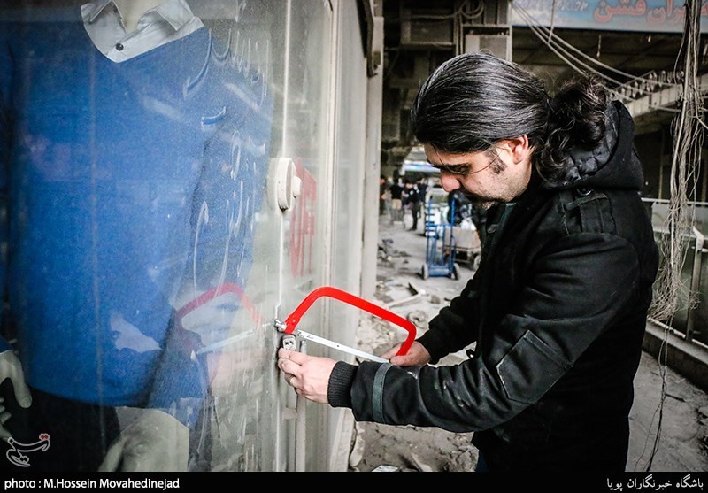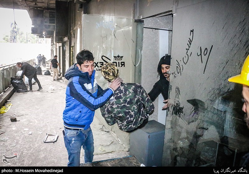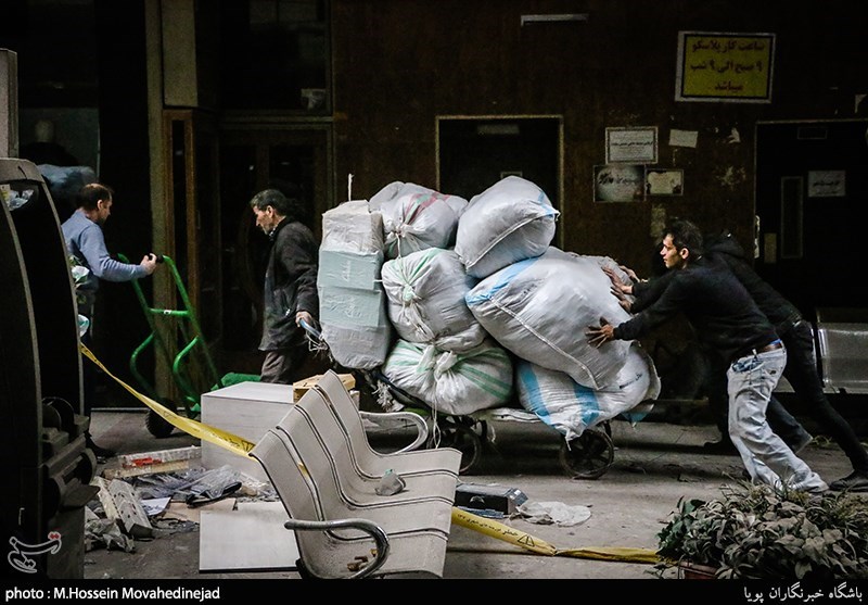 تصاویر خارج کردن اجناس از مغازههای ضلع شمالی ساختمان پلاسکو را در ادامه میبینید.
