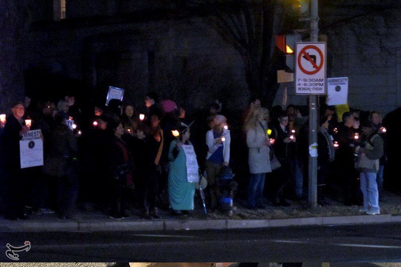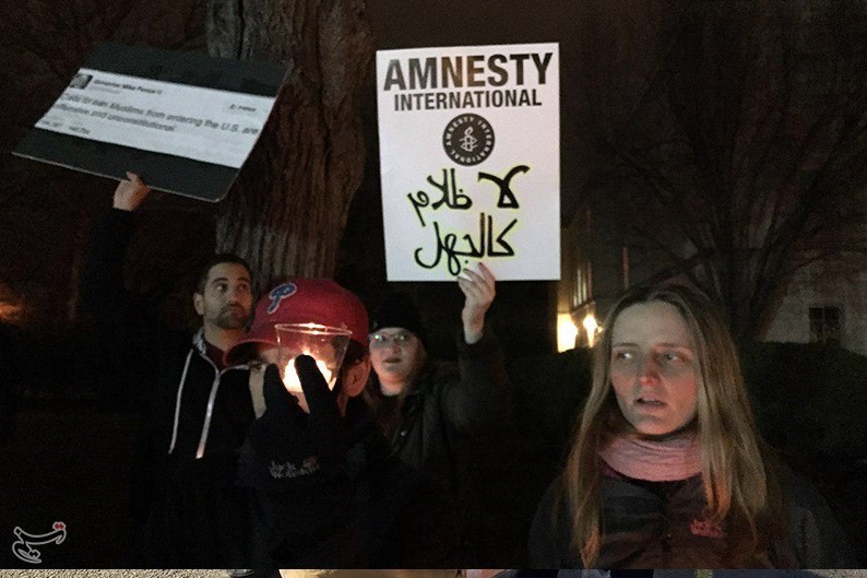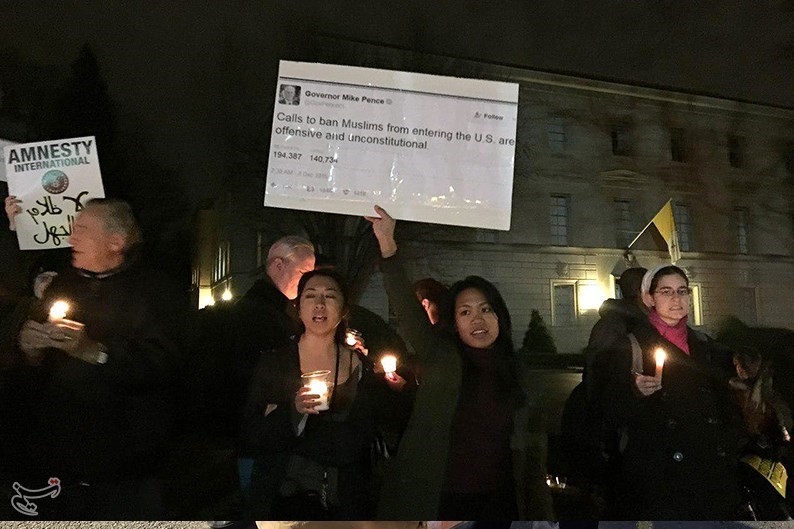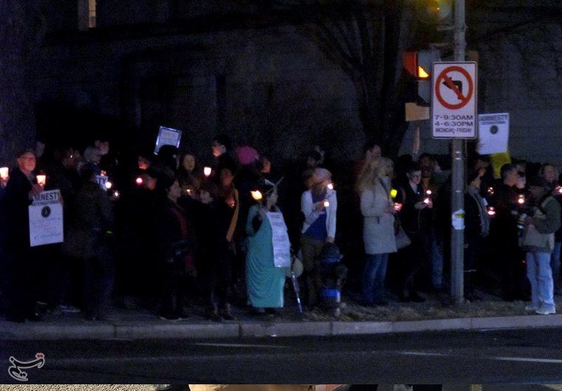 به گزارش خبرنگار خبرگزاری تسنیم در واشنگتن، شب گذشته صدها نفر از قشرهای مختلف مردم آمریکا مقابل منزل «مایک پنس» معاون دونالد ترامپ رئیس جمهوری این کشور که در خیابان ماساچوست قرار دارد، دست به تظاهرات خاموش زدند، این افراد در حالی که شمعهای روشن در دست داشتند، به سردادن شعار میپرداختند.