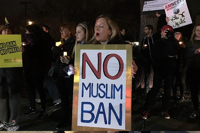 ترامپ اخیراً در رویکردی نژادپرستانه، ورود اتباع سوریه و شش کشور دیگر یعنی ایران، عراق، سودان، لیبی، سومالی و یمن را حداقل بهمدت 90 روز ممنوع اعلام کرده بود. متن فرمان اجرایی که ترامپ روز جمعه هشتم بهمن، آن را امضا کرد شامل تعلیق برنامه اجازه ورود پناهندگان به آمریکا برای 120 روز، ممنوعیت ورود پناهندگان سوری تا زمان اعمال "تغییرات جدی" که با منافع ملی سازگار است، بود.