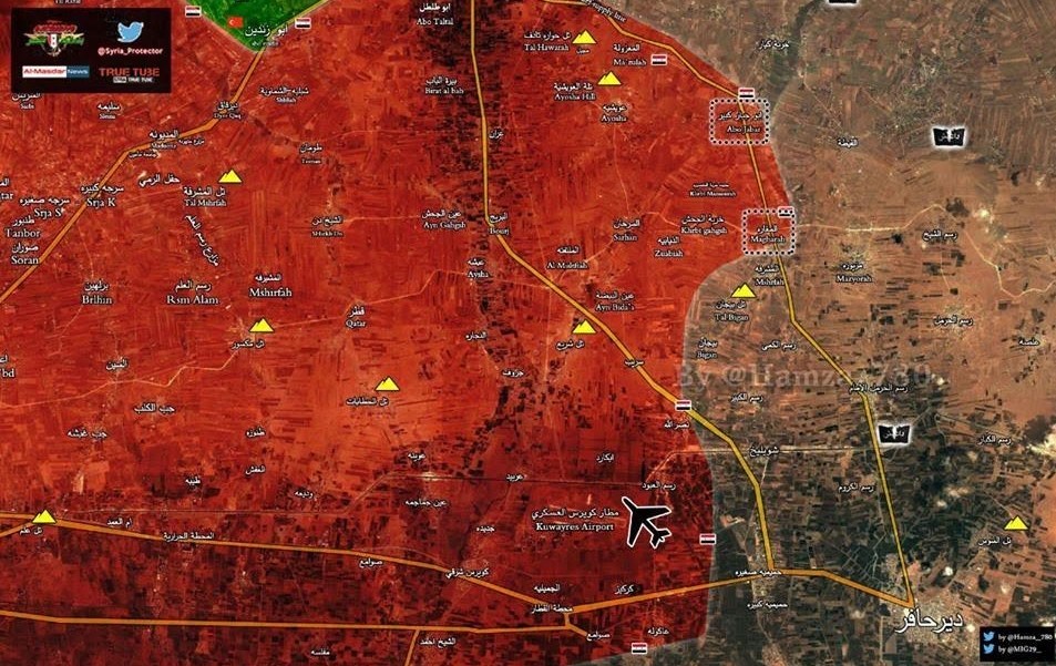 بر اساس این گزارش، نیروهای ارتش سوریه در ادامه پیشروی به سمت شهر «الباب» که در اشغال گروه تروریستی داعش است، شهرک «المنصوره» را پس از درگیری شدید با تکفیریها آزاد کردند، ارتش همچنین مواضع داعشیها را در شهرک «ابو جبار» و شهرک «تادف» در جنوب الباب هدف قرار داد که در نتیجه آن تعدادی از تونلها و استحکامات آنها منهدم شد.