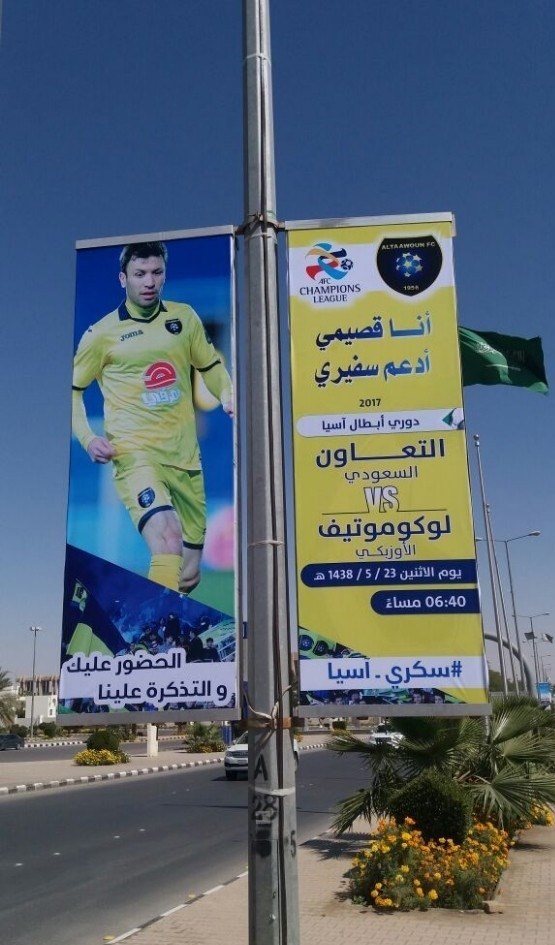 باشگاه التعاون عربستان همچنین با چاپ بنرهای تبلیغاتی و نصب آن در بخش‌های پرتردد شهر بریده ضمن اعلام تاریخ و زمان بازی با تیم لوکوموتیو ازبکستان خواهان حضور طرفداران در ورزشگاه شد و از رایگان بودن تماشای این بازی خبر داد.