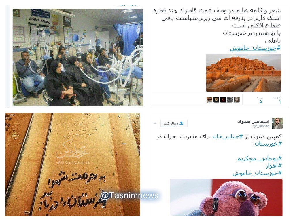 این اتفاق تا حد زیادی زندگی خوزستانی ها رو مختل کرده است و قطب اقتصادی جنوب ایران این روزها حال و احوال خوبی ندارد ؛ همین امر باعث شده تا مردم به هر طریقی از تجمع مقابل ادارات دولتی گرفته تا راه اندازی کمپین های اطلاع رسانی در شبکه های اجتماعی از مسئولین دولتی تقاضای کمک و رسیدگی کنند .