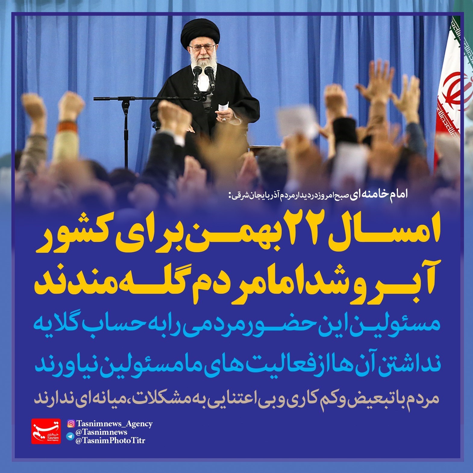 فتوتیتر/امام خامنه ای:امسال 22 بهمن برای کشور آبرو شد اما مردم گله‌مندند