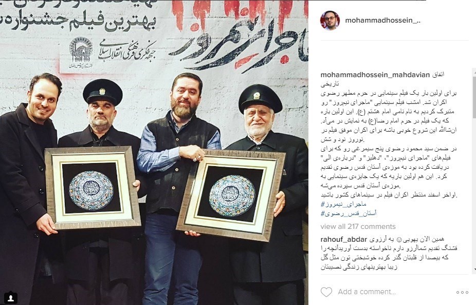 به گزارش گروه رسانه های خبرگزاری تسنیم، محمدحسین مهدویان، دیشب، پست جدیدی درباره اینکه اولین بار یک فیلم سینمایی در حرم مطهر رضوی اکران شده است، در صفحه اینستاگرامش منتشر کرد.