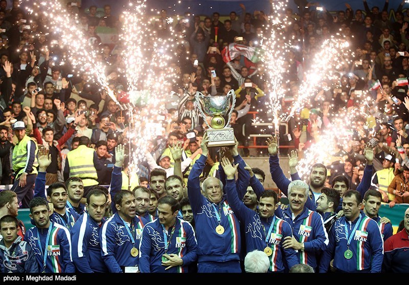 به گزارش خبرگزاری تسنیم از کرمانشاه، تیم کشتی آزاد ایران پس از قهرمانی در مسابقات جام جهانی کاپ قهرمانی را دریافت کرد، تیم آمریکا کاپ نائب قهرمانی و تیم آذربایجان نیز به مقام سوم دست پیدا کرد.