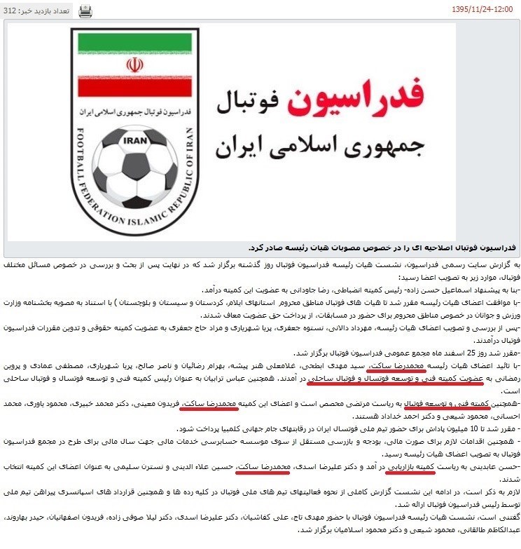 پس از اینکه ساکت به عنوان مشاور مسئول حوزه ریاست پست گرفت و رئیس سازمان تیمهای ملی هم شد، در نشست هیئت رئیسه که 23 بهمنماه 95 پستهای جدیدی گرفت. مشاور رئیس فدراسیون در این جلسه به عنوان عضوی از کمیته فنی و توسعه فوتسال و فوتبال ساحلی، عضوی از کمیته فنی و توسعه فوتبال و عضوی از کمیته بازاریابی انتخاب شد.