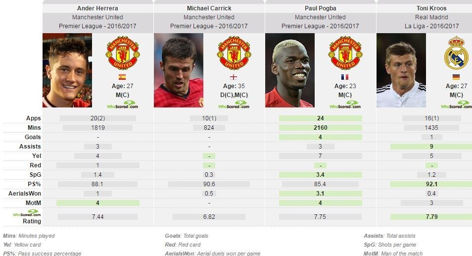 کریک هرگز بازیکنی نبوده که در میانه زمین زیاد جا به جا شود و کروس بیشتر از او این توانایی را دارد که توپ را به گردش درآورد، دلیلش این است که بازیخوانی او بهتر از کریک است و میتواند از فضاهای خالی به بهترین شکل استفاده کند. هر دویشان هم همیشه وقتی توپ در اختیار همتیمیهایشان است سعی میکنند خودشان را نشان دهند تا توپ را بگیرند. وقتی هم توپ به کروس برسد با پوششی که برای میانه زمین است، به لوکا مودریچ این شانس را میدهد که بیشتر پیشروی کند. این تاکتیک میتواند برای پوگبا عالی باشد.