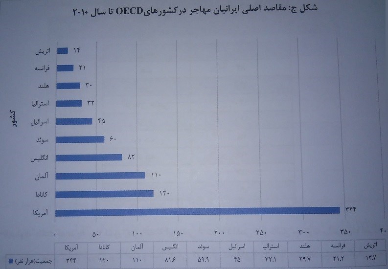 مهمترین کشورهای میزبان ایرانیان مهاجر در کشورهای OECD در شکل زیر است: