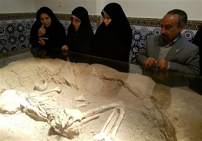خواجه بیدختی با بیان اینکه این اسکلت قدمت 4000 ساله داشته و از تپه حصار دامغان به دست آمده است افزود: این اسکلت که مربوط به یک زن باردار است به شکل کاملاً دستنخورده از محل حفاری در تپه حصار به این مکان منتقل یافته است.