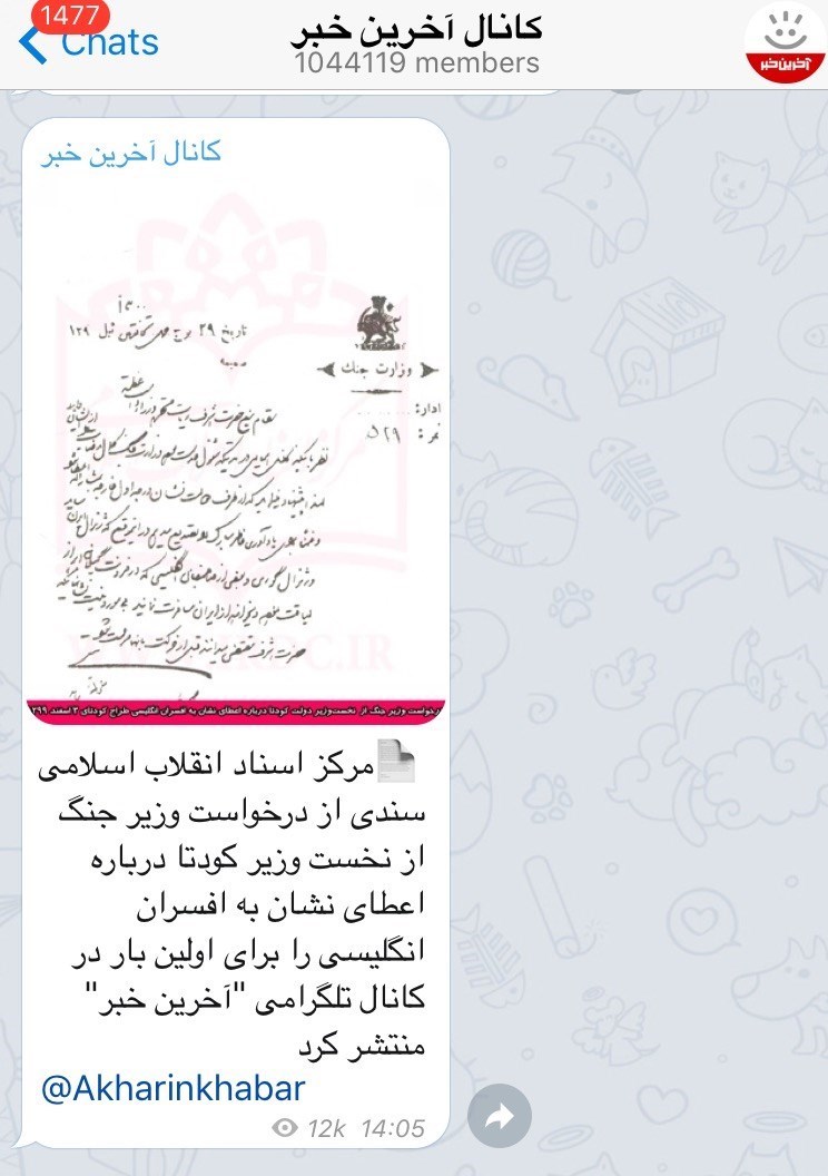 به گزارش گروه رسانه های خبرگزاری تسنیم،مرکز اسناد انقلاب اسلامی سندی از درخواست وزیر جنگ از نخست وزیر کودتا درباره اعطای نشان به افسران انگلیسی در کودتای 3 اسفند 1299 را برای اولین بار در کانال تلگرامی "آخرین خبر" منتشر کرد.