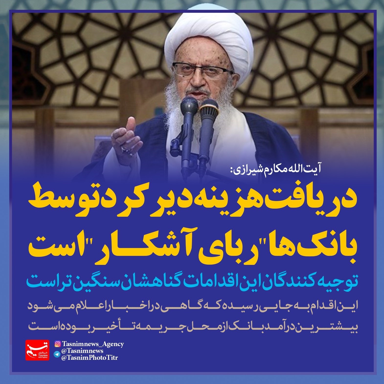 فتوتیتر/آیت الله مکارم شیرازی:دریافت هزینه دیرکرد توسط بانک‌ها "ربای آشکار" است