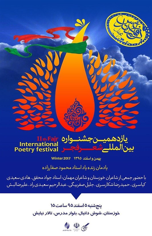 مراسم پایانی یازدهمین جشنواره بینالمللی شعر فجر، 18 اسفند در مشهد، پایتخت فرهنگی جهان اسلام در سال 2017 برگزار میشود و طی آن، برگزیدگان کتابهای شعر منتشر شده در سال 1394 در سه حوزه شعر بزرگسال، شعر کودک و نوجوان و درباره شعر معرفی میشوند. همچنین در بخش ویژه افغانستان، بهترین کتابهای شعر منتشر شده طی 10 سال گذشته این کشور در آئین اختتامیه جشنواره شعر فجر معرفی خواهند شد.