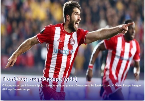 سایت ورزش یونان هم تیتر «بهشت در آنکارا» را انتخاب کرد و نوشته است: نسیم در آنکارا وزید و المپیاکوس با نتیجه 3 بر صفر پیروز شد. دو گل توسط کریم انصاریفرد با انرژی جادویی به ثمر رسید.