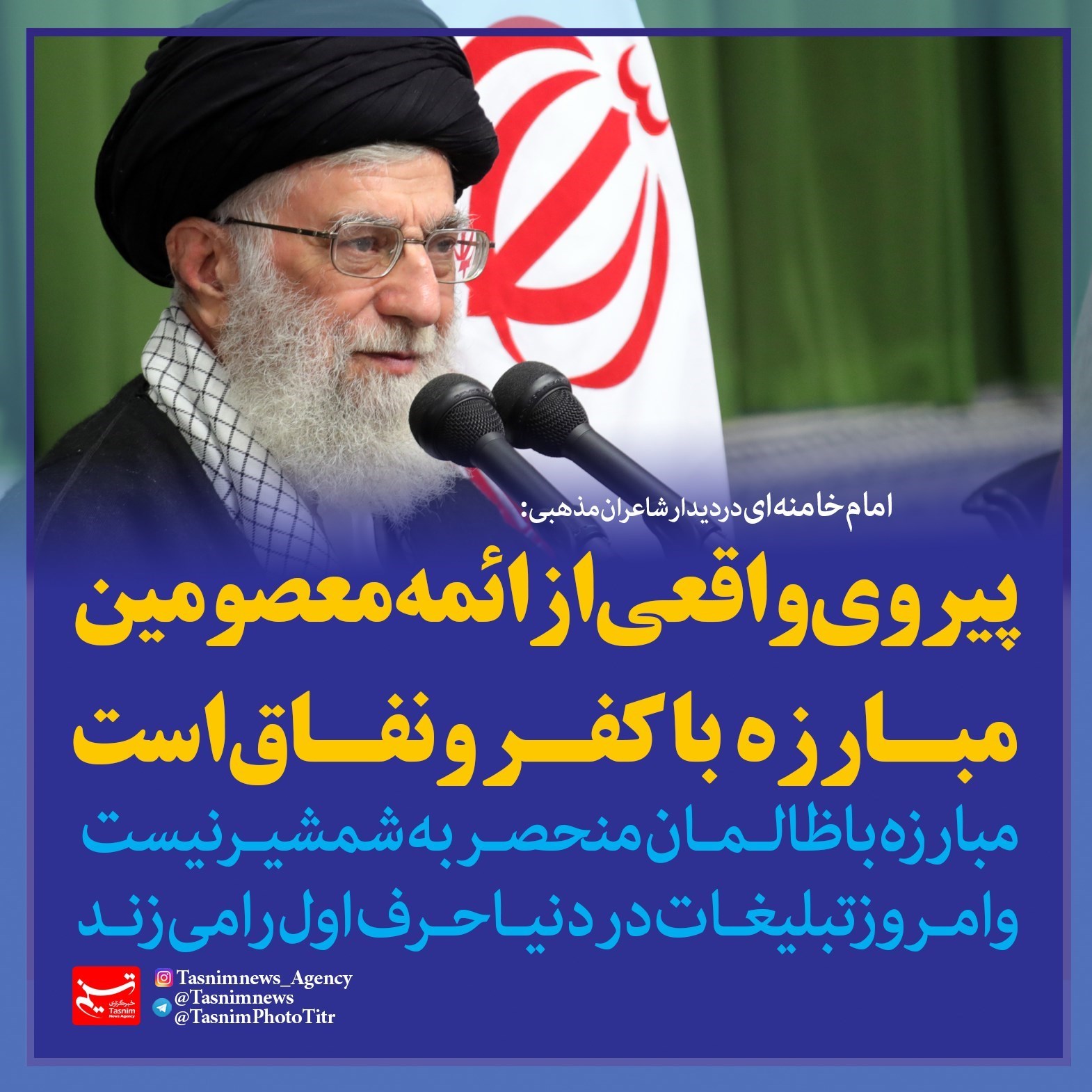فتوتیتر/امام خامنه ای:پیروی واقعی از ائمه معصومین، مبارزه با کفر و نفاق است
