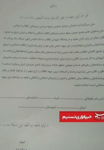 متن سوگندنامه را در ذیل مشاهده کنید: