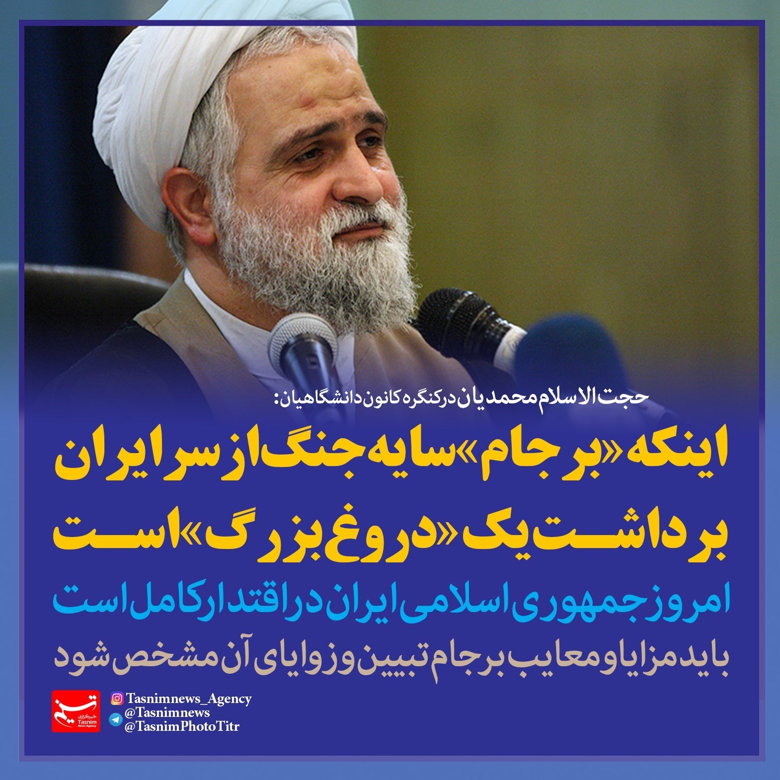 رئیس نهاد نمایندگی مقام معظم رهبری در دانشگاه‌ها گفت: کسانی که می‌گویند برجام سایه جنگ را از سر ایران به دور کرد، یک دروغ بزرگ به مردم تحویل می‌دهند.