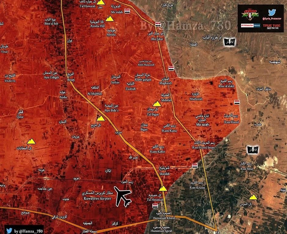 در حومه شرقی حلب، نیروهای ارتش سوریه شهرکهای «رسم الشیخ و رسم الحرمل» در شمال دیرحافر را پس از درگیری با تروریستهای داعشی آزاد کرده بودند و همچنین توانستند چند داعشی را در شهرک رسم الحرمل در دام خود گرفتار کرده و اسیر کنند.