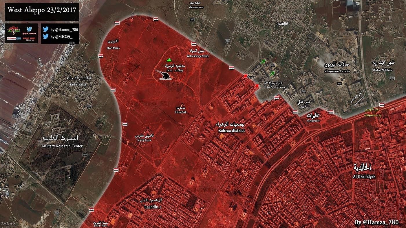 از حلب هم خبر میرسد که نیروهای ارتش سوریه با پیشروی در محور «جمعیه الزهرا» در غرب، چندین مجتمع مسکونی در اطراف مسجد الرسول الاعظم(ص) را پاکسازی کردند و درگیریها با تروریستهای جبهه النصره همچنان ادامه دارد. این در حالی است که گروههای تروریستی موسوم به «لواء الحریة الإسلامی- الجیش الحر» در بیانیهای به کشته شدن 17 نفر از اعضای خود در حملات جنگندههای ارتش سوریه اعتراف کردند.