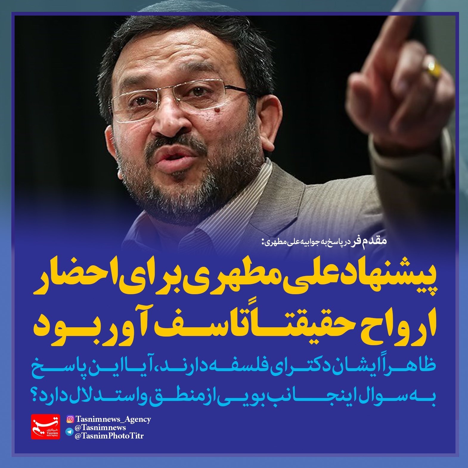 فتوتیتر/مقدم فر: پیشنهاد علی مطهری برای احضار ارواح حقیقتاً تأسف‌آور بود