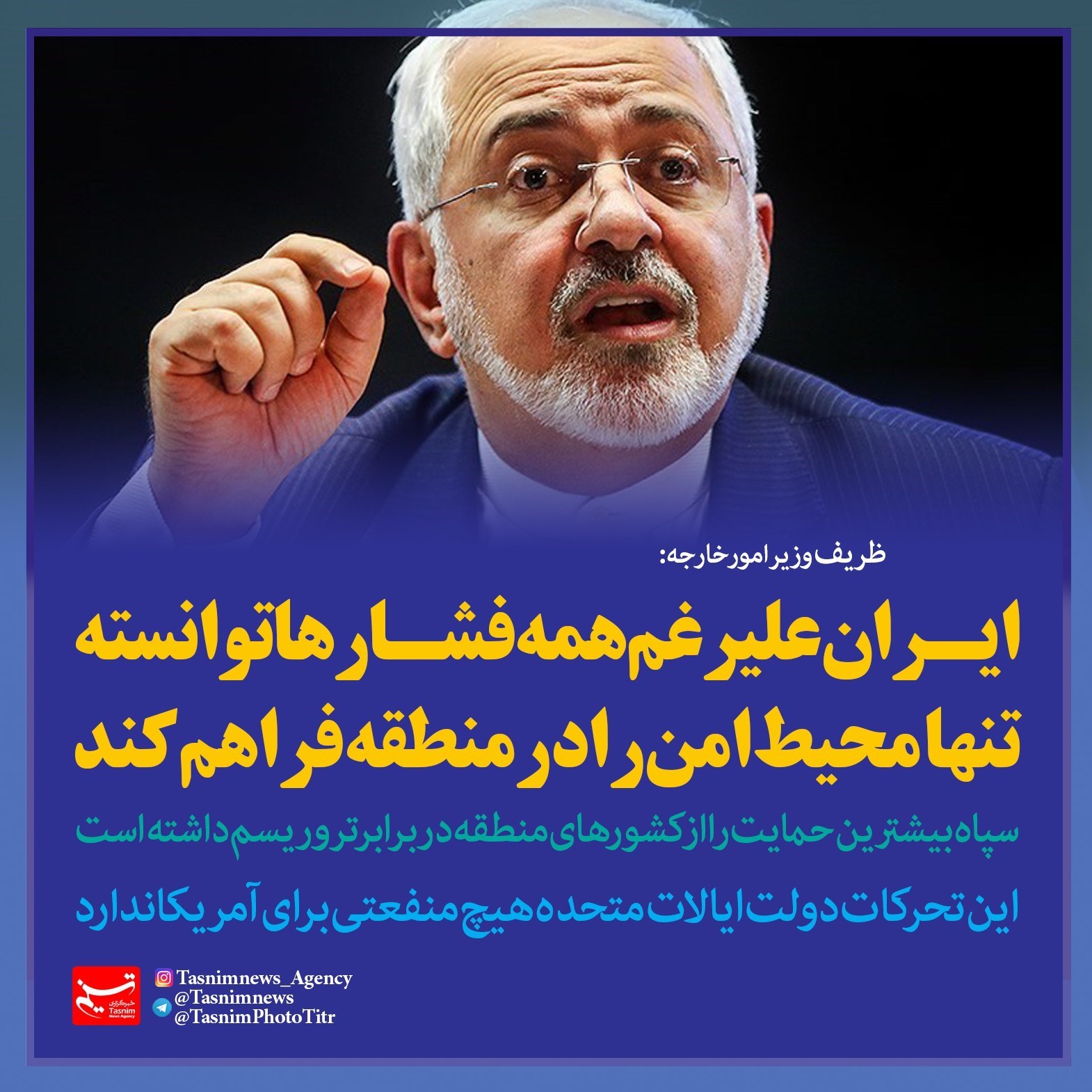 فتوتیتر/ظریف:ایران علیرغم همه فشارها توانسته تنها محیط امن را در منطقه فراهم کند