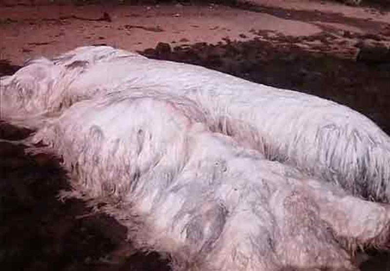 این حیوان عجیب که بیشتر شبیه یک نهنگ است ، بدنی کاملا مودار و حدود 2000 کیلو وزن دارد و به گفته افراد محلی احتمالا بر اثر ضربه کشتی ها طی دو هفته گذشته کشته شده است .