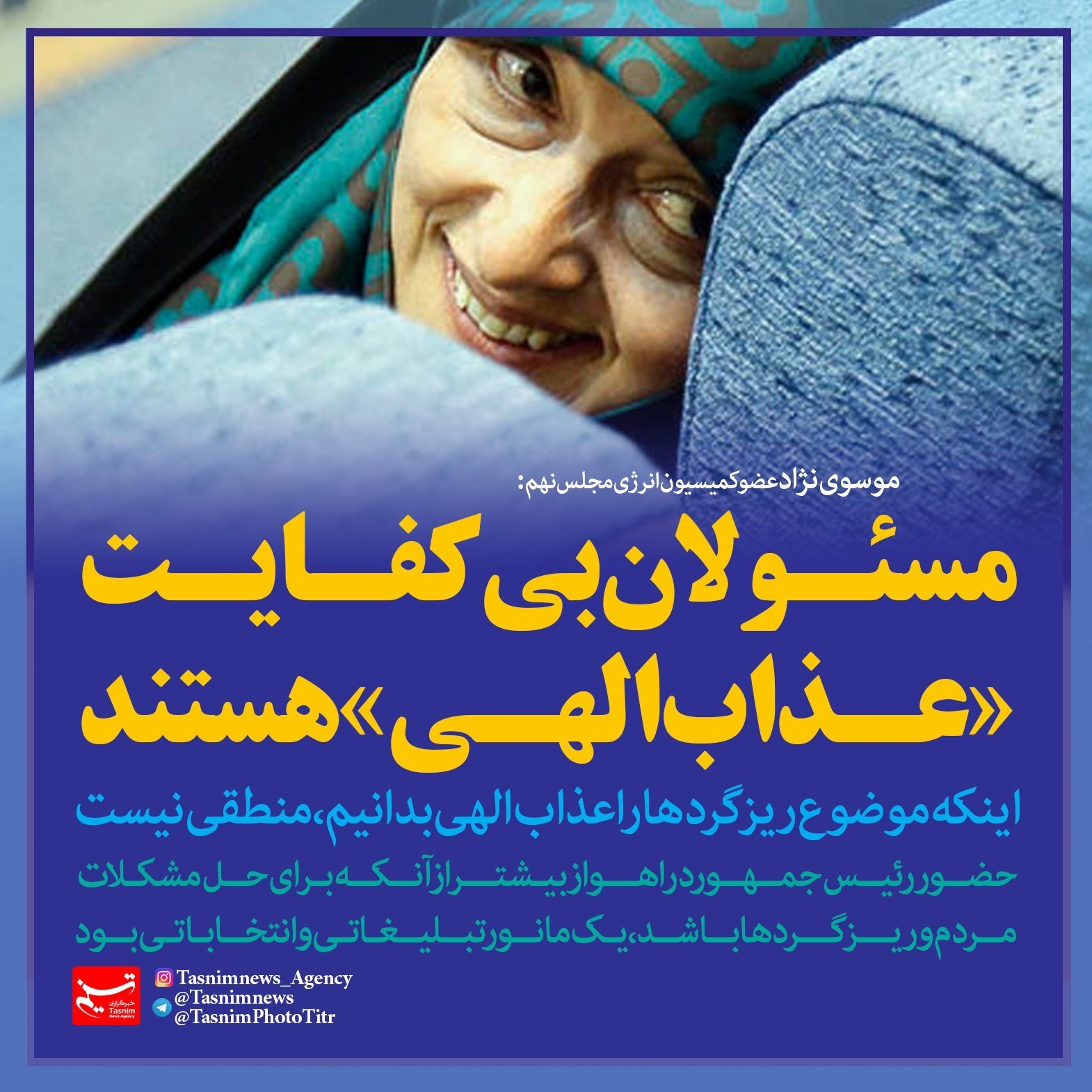 فتوتیتر/موسوی نژاد: مسئولان بی‌کفایت «عذاب الهی» هستند