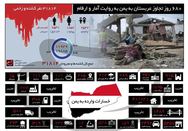 اینفوگرافیک / 680 روز تجاوز عربستان به یمن به روایت آمار و ارقام