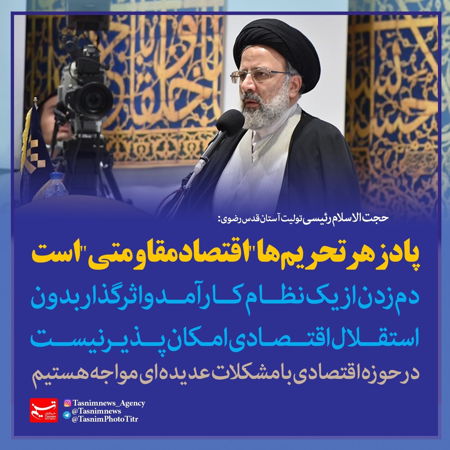 فتوتیتر/حجت الاسلام رئیسی:پادزهر تحریم‌ها "اقتصاد مقاومتی" است