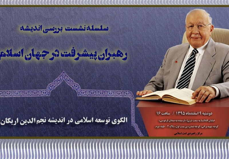 اجلاس " الگوی توسعه اسلامی در اندیشه نجم الدین اربکان" روز دوشنبه از ساعات 16:30 تا 18:30 در جبهه فکری انقلاب اسلامی در خیابان انقلاب، نرسیده به میدان فردوسی، کوچه شهید براتی، کوچه تمدن، بن بست 1، پلاک 2 برگزار خواهد شد.